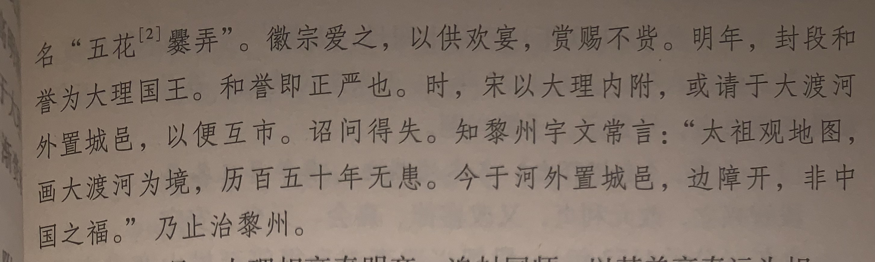 事实上,有宋一代对待大理极其慎重,一直秉持着宋太祖的规划。北宋徽宗年间,北宋已至将亡,有人建议越过大渡河修筑城池,结果在知黎州宇文常的劝谏下作罢,理由则更简单,怕引起大理国的猜疑。